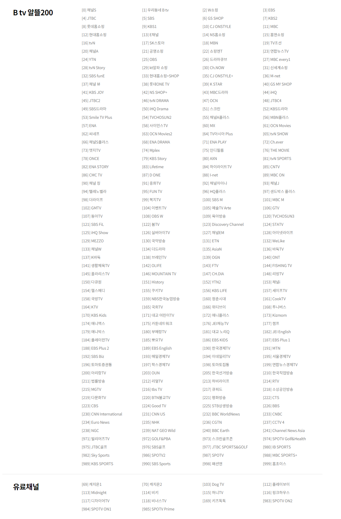 [SK브로드밴드] B tv 요금제 및 채널 편성표 안내 (SPOTV) 본문